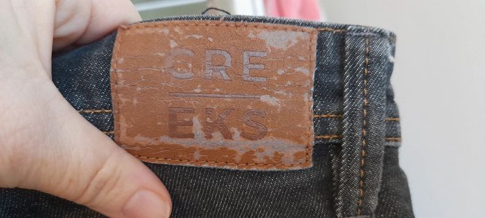Jean porté mais en très bon état Abîmé à cause de la ceinture sur l'écusson.