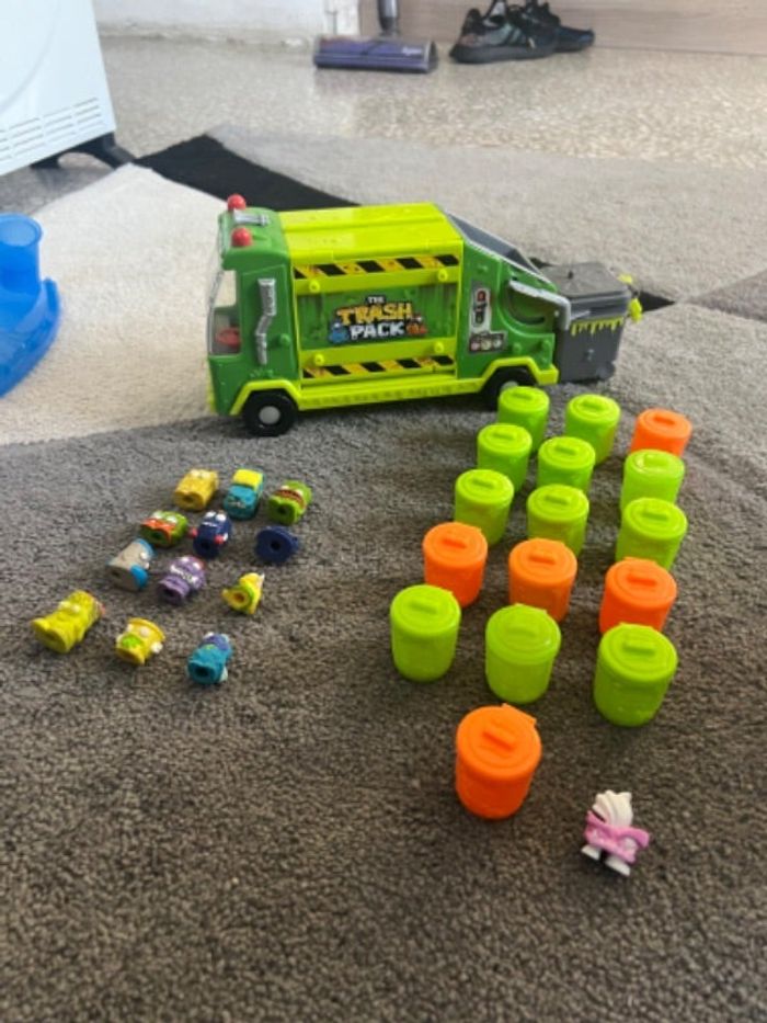 Vends un camion poubelle trash pack avec 16 poubelle, 13 petit bonhommes en silicone et 1 qui n’allait pas avec ça mais qui est en cadeau,