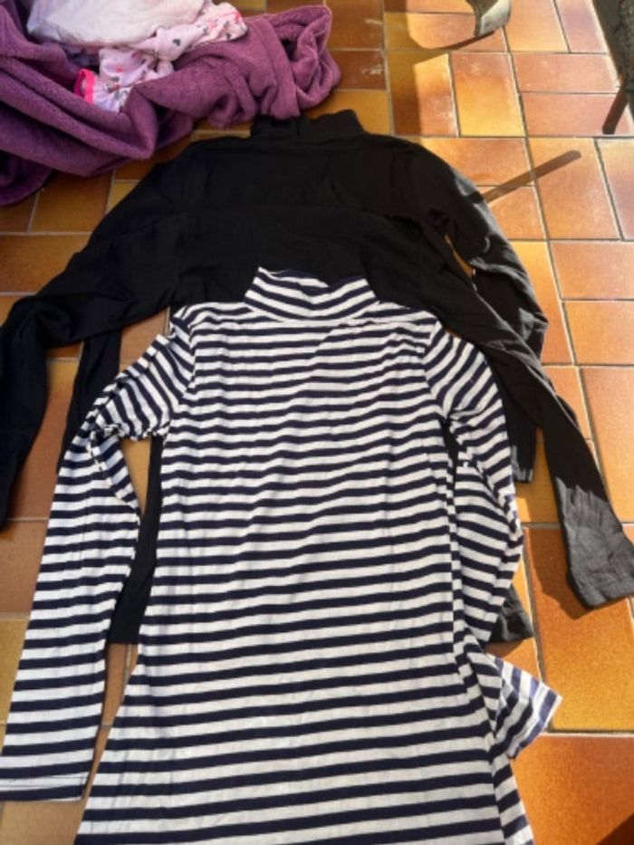 Vends un lot de 3 cols roulés, deux noirs et un rayés, neuf sans étiquette en taille S