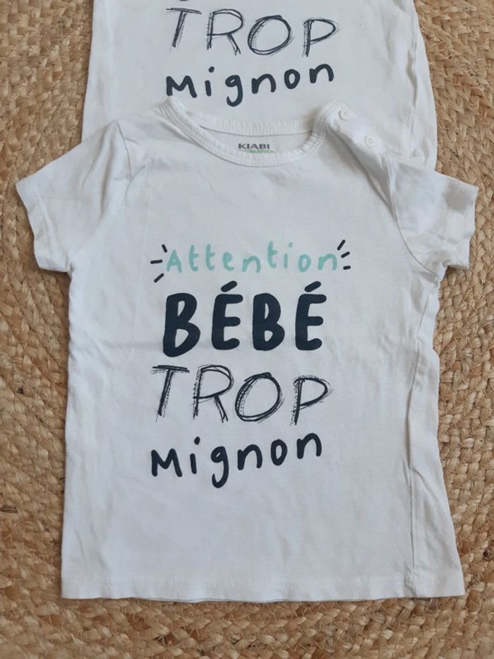 2 tee-shirts Inscription "attention bébé trop mignon" 18 mois #anthonyagnes_bebe18M