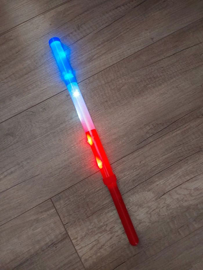 Vends bâton supporter de l'équipe de France pour tout sport Y a 3 différents mode de jeu de lumière BLEU, BLACNC ,ROUGE