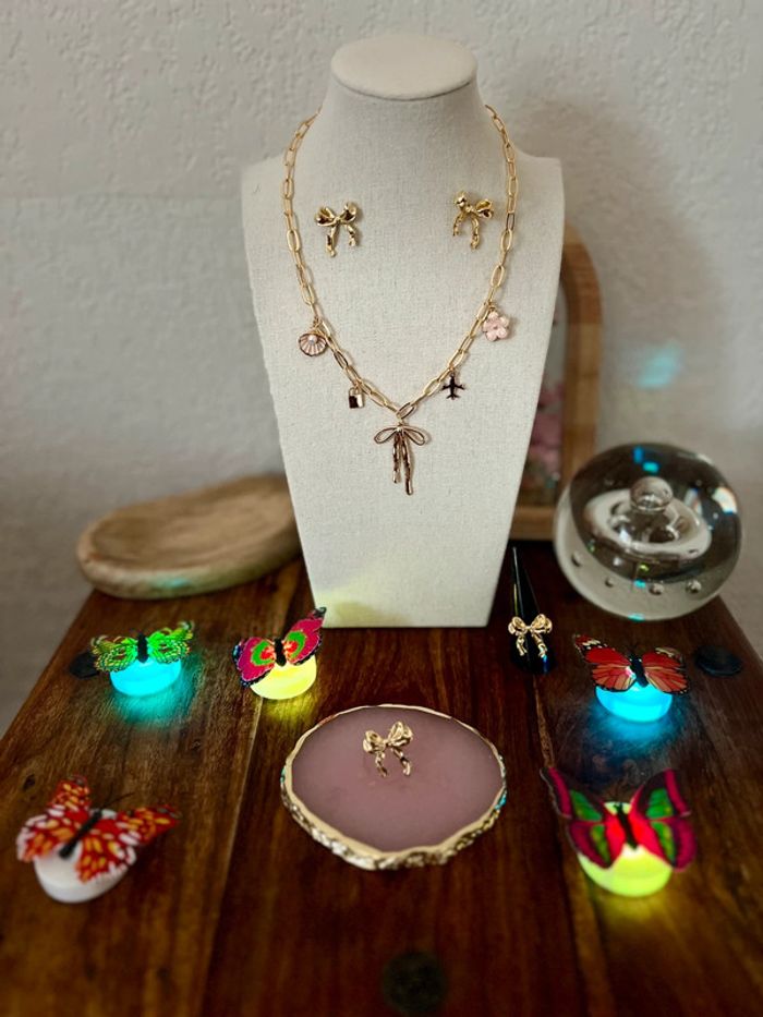 Bel ensemble 🎁 collier et bague ajustable ainsi que les boucles d'oreilles neuf en acier inoxydable