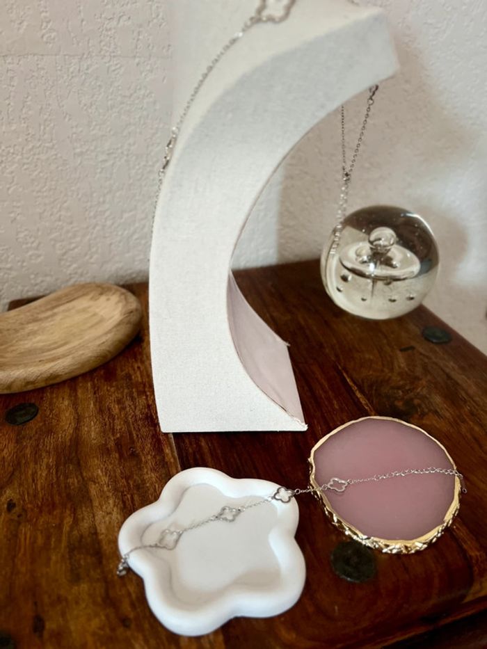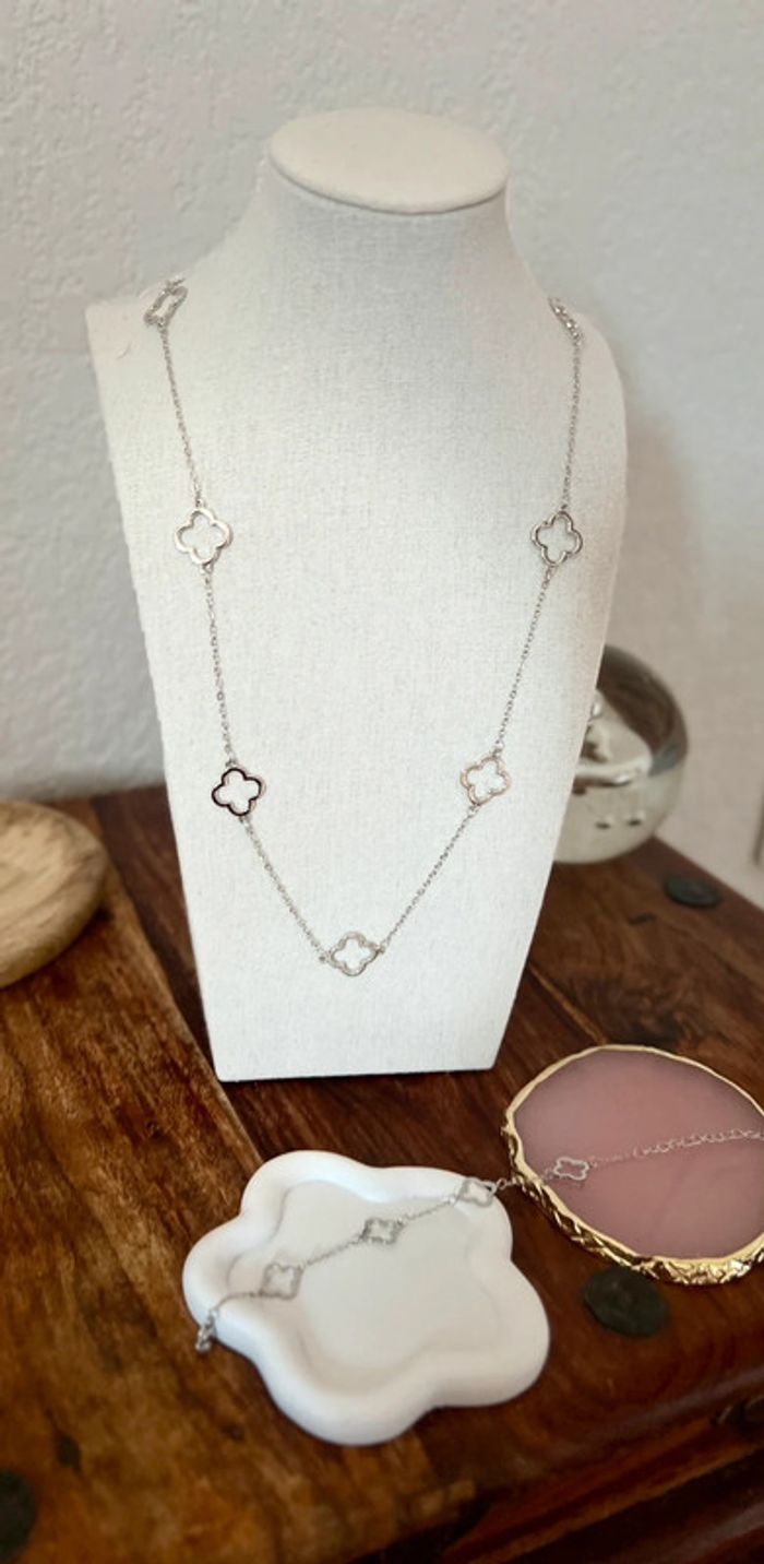 Ensemble collier et sa gourmette trèfle tout deux ajustable neufs en acier inoxydable
