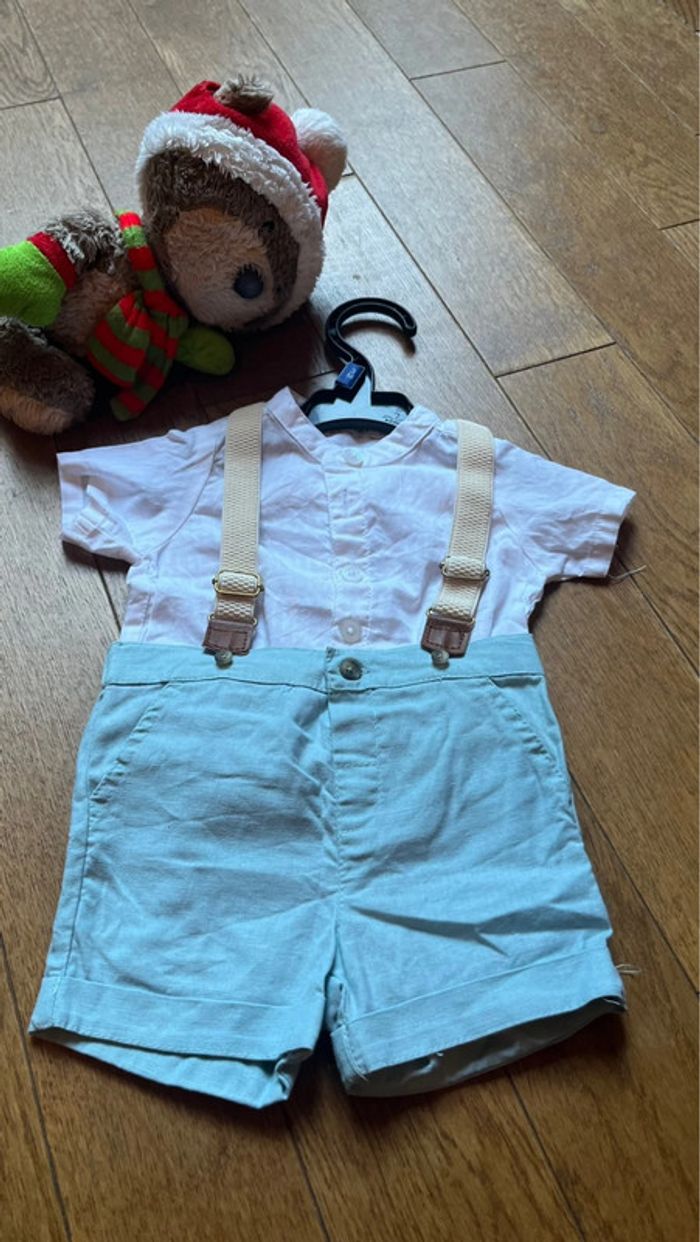 Chemise et short à bretelle en parfait état jamais porté #jumeauxetplus #ensemble3mois #ete3mois #été2025 #short3mois #garcon3mois #ophehc763mois