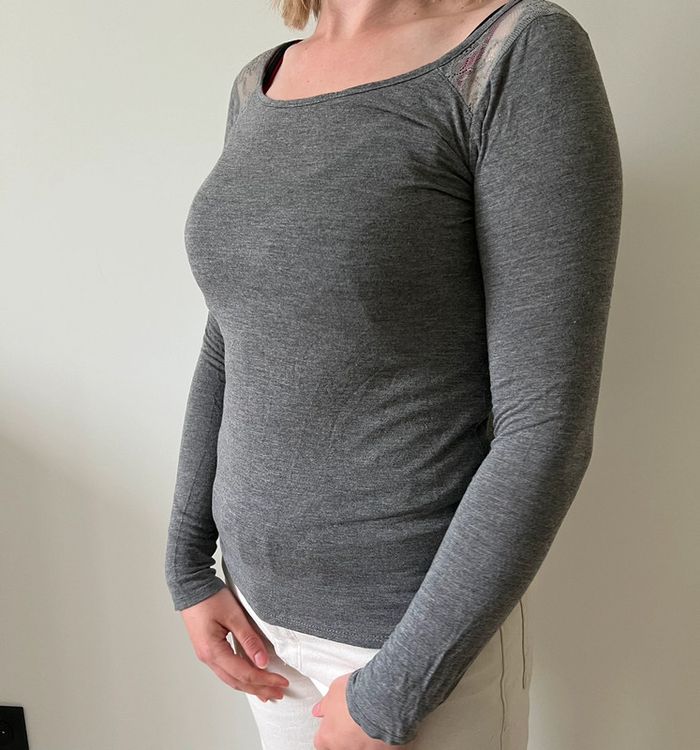 Haut gris avec dentelle à l’arrière Marque camaïeu Taille S