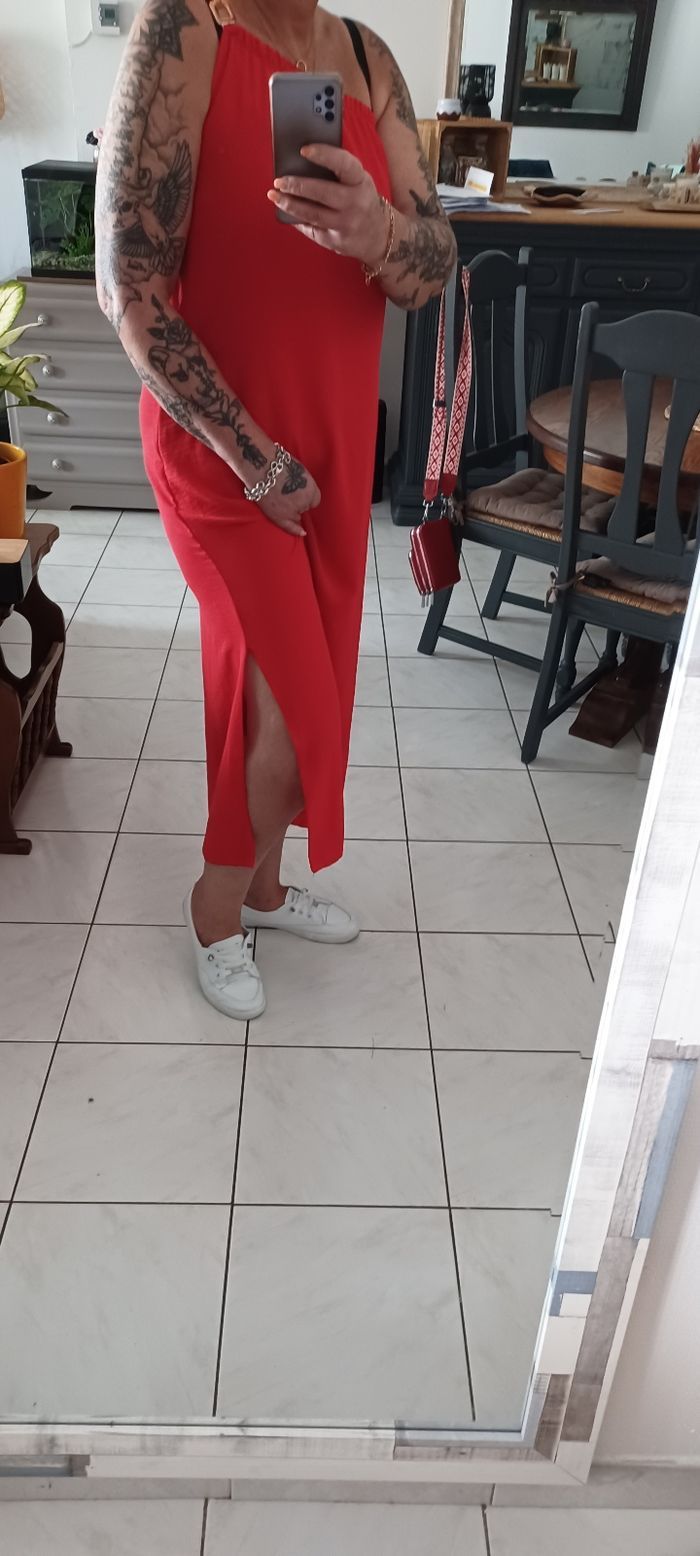 Très jolie robe de soirée ou de cocktail T U d'un 38 jusqu'à 42 Si cela peu vous Aidé je mesure 1m78 Fendue des 2 côtés Neuf Jamais porté Marque made in italy N'hésitez pas à faire des lot pour économiser les frais d'envoi