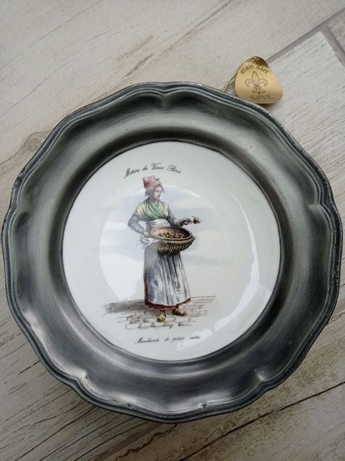 Assiette de collection "Métiers du Vieux Paris" - Porcelaine et étain