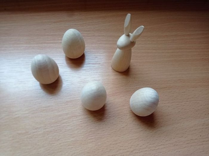 Lot de 5 figurines en bois - Lapin & oeufs de Pâques