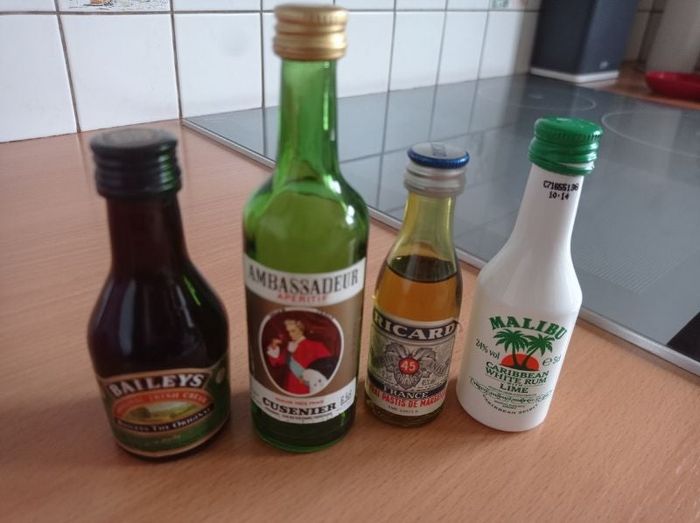 Lot de 4 mignonettes vides (Bailey's, Ambassadeur, Ricard & Malibu)