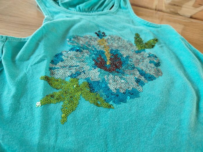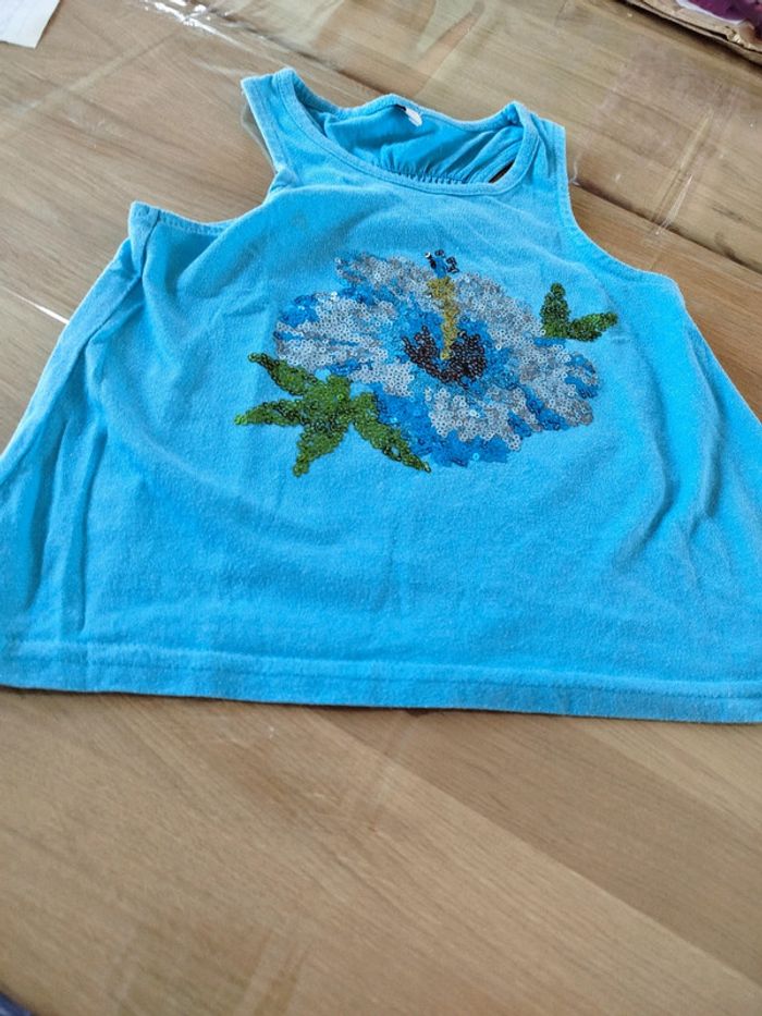 Débardeur turquoise motif hibiscus taille 4 ans sans marque #annechar4ans