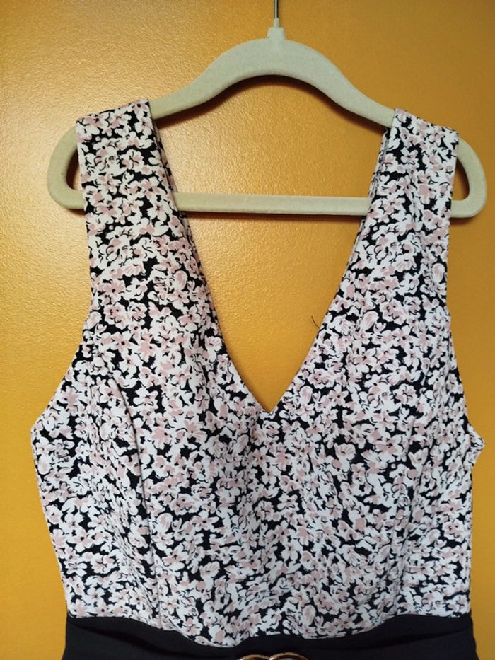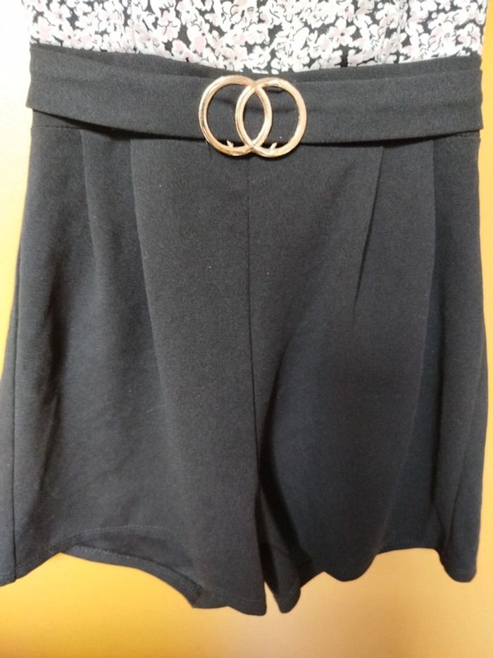Combishort avec fermeture dans le dos couleur noir haut fleuri crème taille unique #annechartailleunique