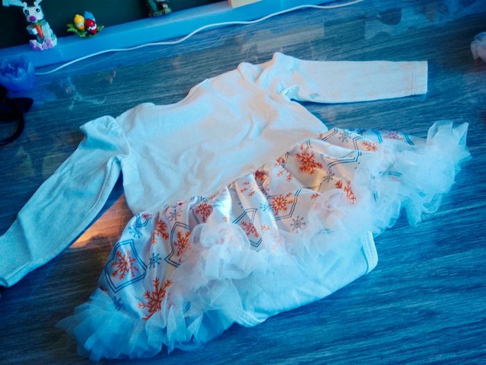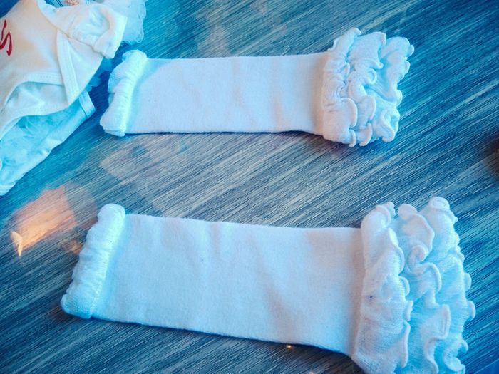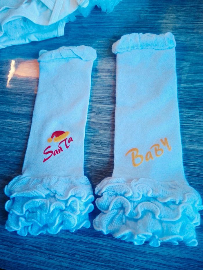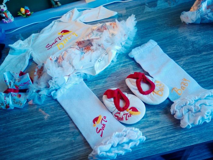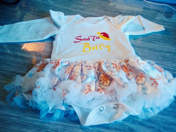 Ensemble noël composé d'une robe blanche avec body intégré de chaussettes haute sans pied de chaussons et d'un bandeau #annechar3mois