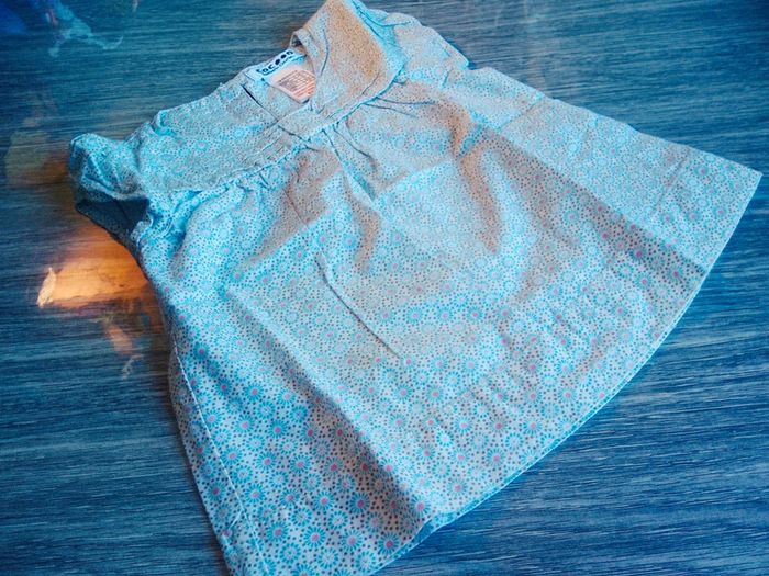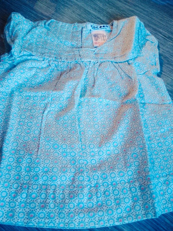 Blouse manche courte blanche fleuri bleu marque cocoon taille 3 mois #annechar3mois