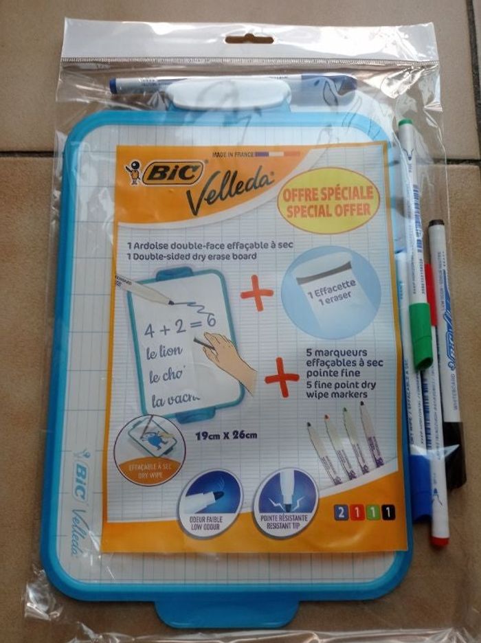 Ardoise Velleda Bic + 5 marqueurs + effacette