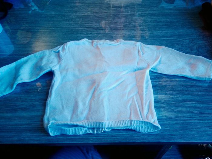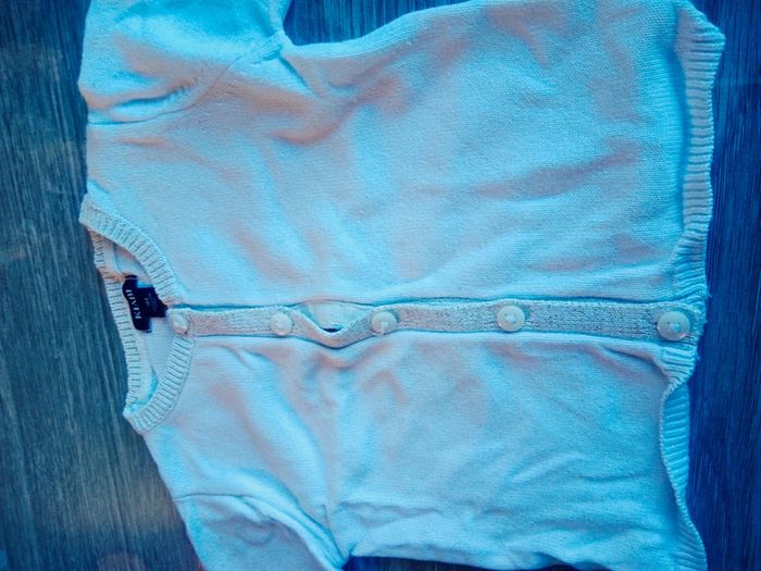 Gilet blanc avec liseré doré taille 3 mois marque Kiabi #annechar3mois