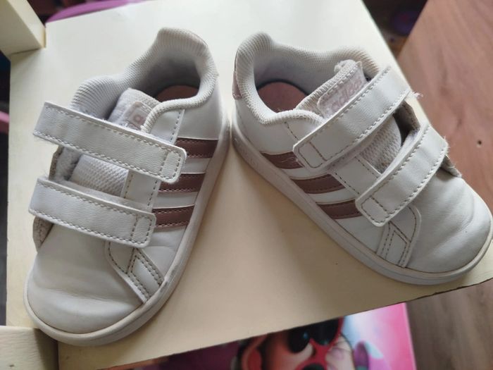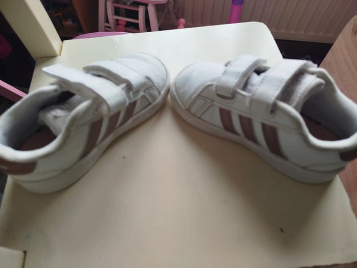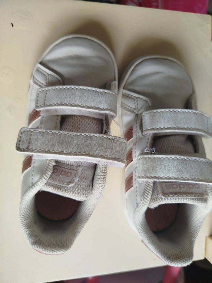 Basket adidas taille 22 couleur blanche et rose perle #annecharchaussure22