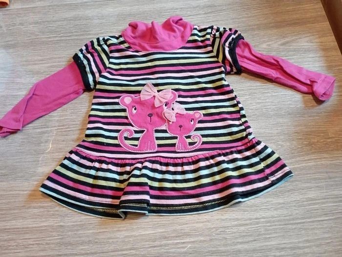 Ensemble 2 pièces un maillot manche longue rayé motif chat et un legging noir avec rayure sur le bas taille 12 mois #annechar12mois