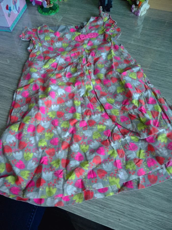 Robe orchestra couleur de fond gris motif fleur blanc vert rouge rose taille 18 mois #annechar18mois