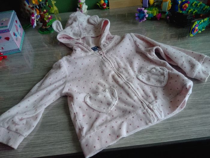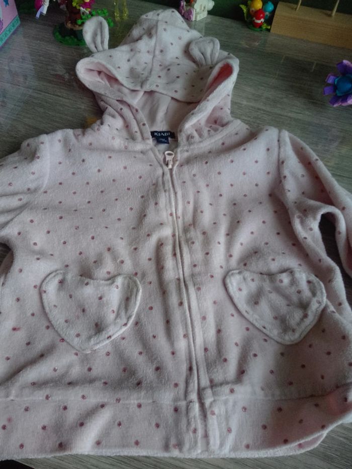 Gilet zippé avec capuche rose a pois rose pailleté marque Kiabi taille 18 mois #annechar18mois