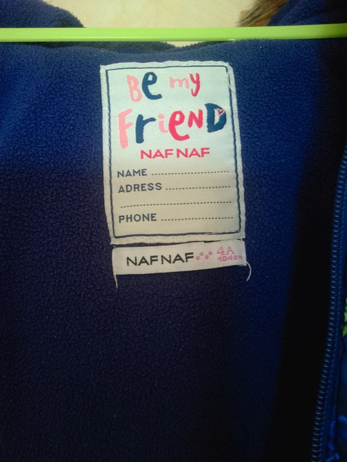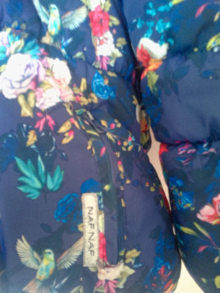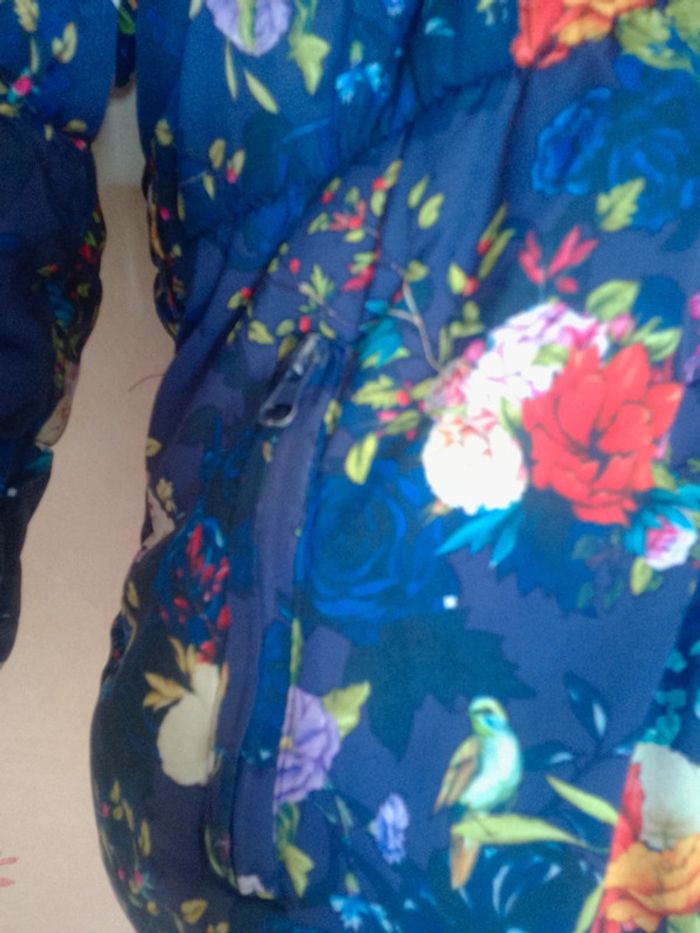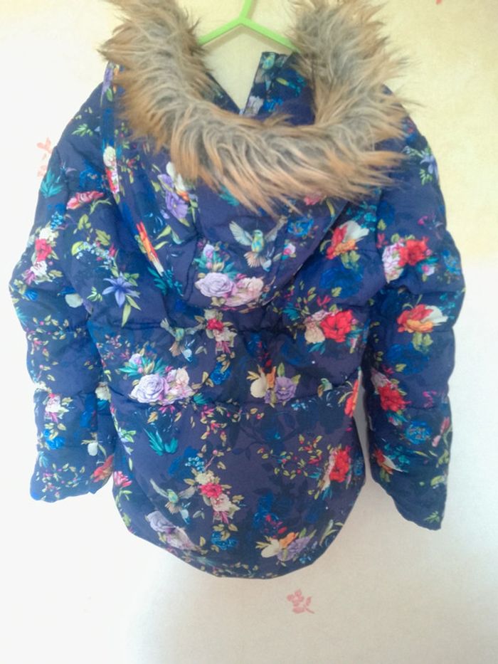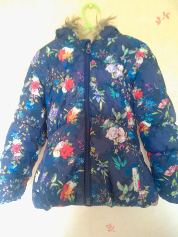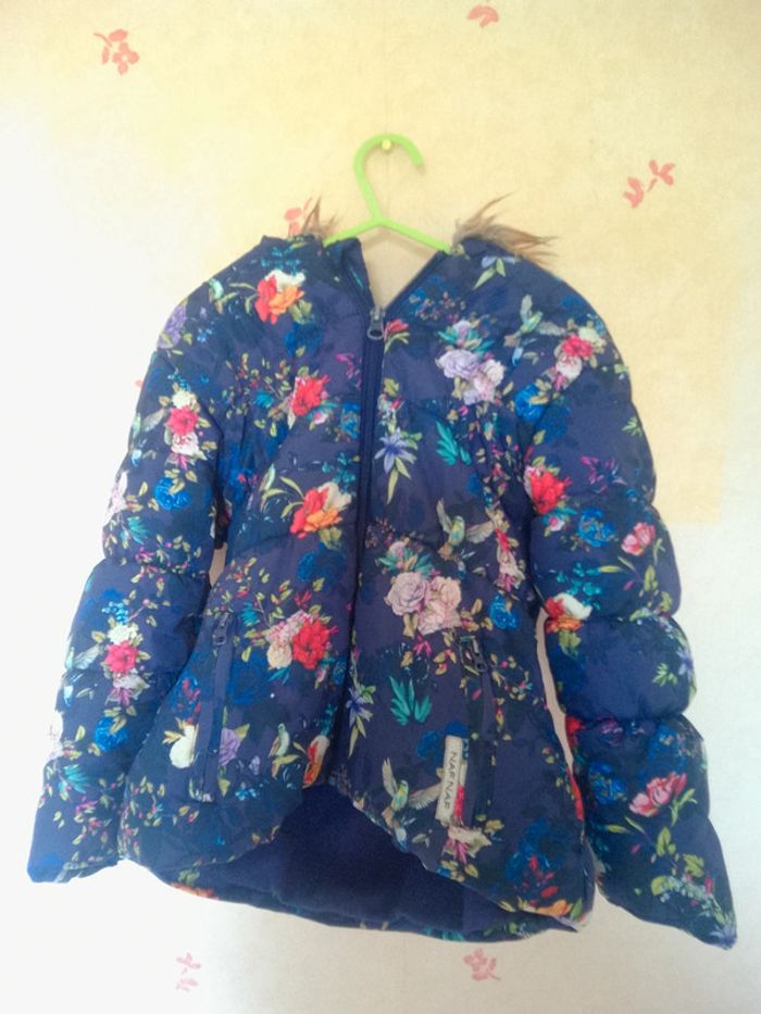 Manteau bleu motif fleuri et oiseaux marque Naf Naf taille 4ans Moltonné à l'intérieur #annechar4ans