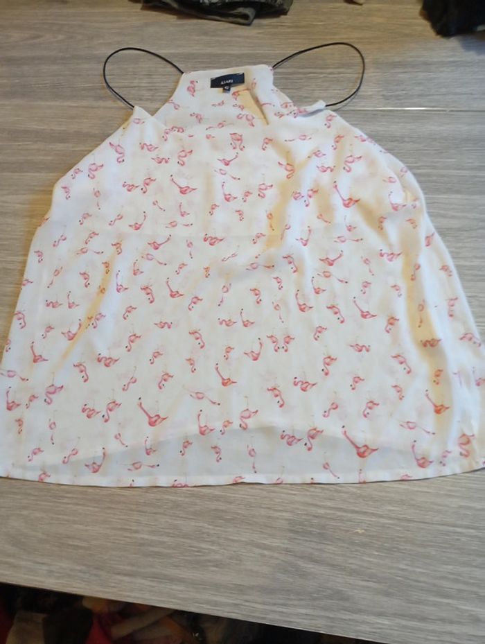 Débardeur blanc motif flamand rose marque Kiabi taille 42 Caisse 7 #annechartaille42