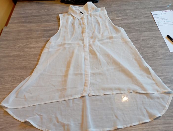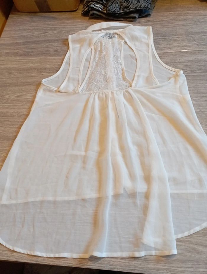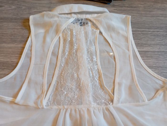 Débardeur chemisier blanc effet voile transparent dentelle dans le dos marque no excuse taille 40 Caisse 7 #annechartaille40