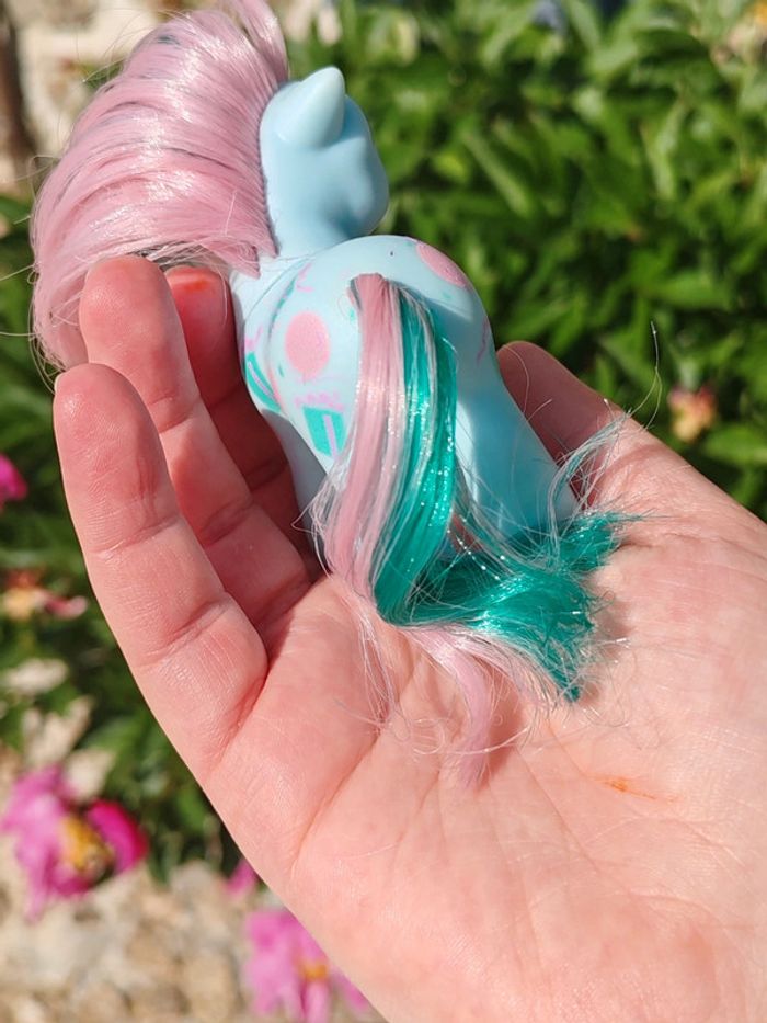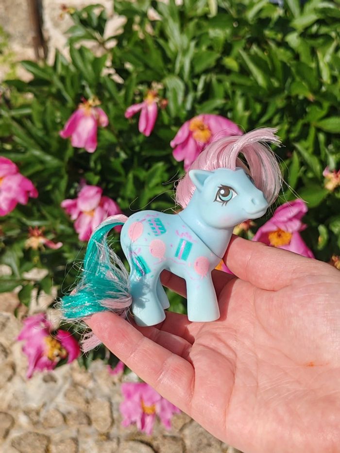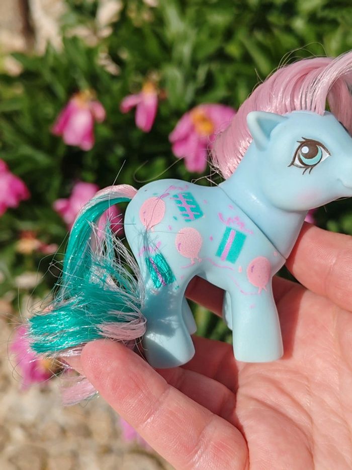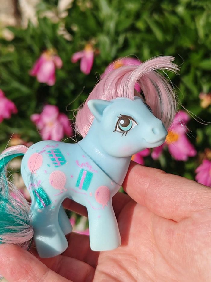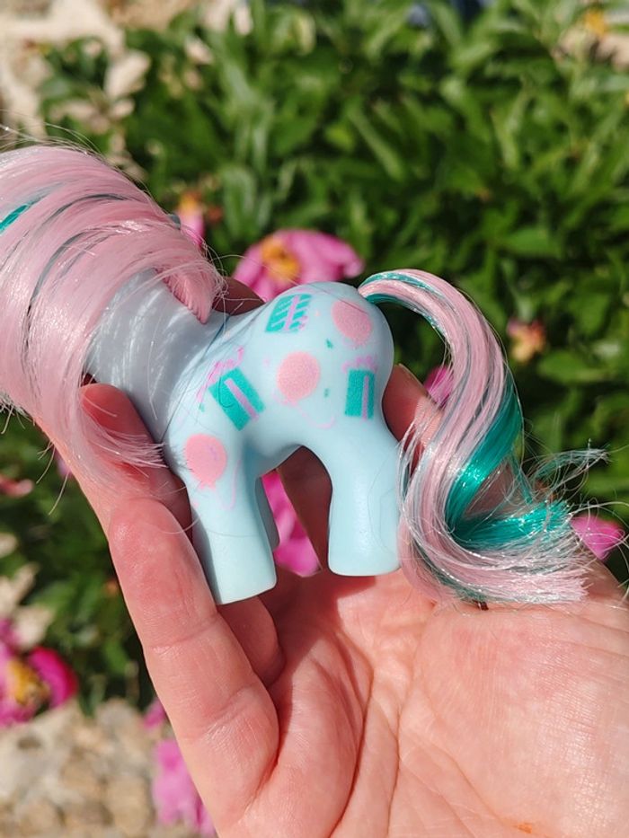 My little pony g1 - vintage Hasbro - 1954 - made in china Symboles cadeaux et ballons Bleu et rose En bon état général , une trace jaune derrière la patte (voir photo) ➡️ #ursullabuffaypetitponey