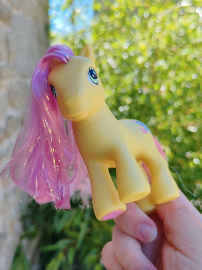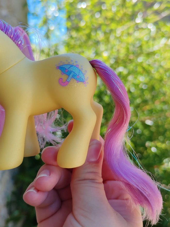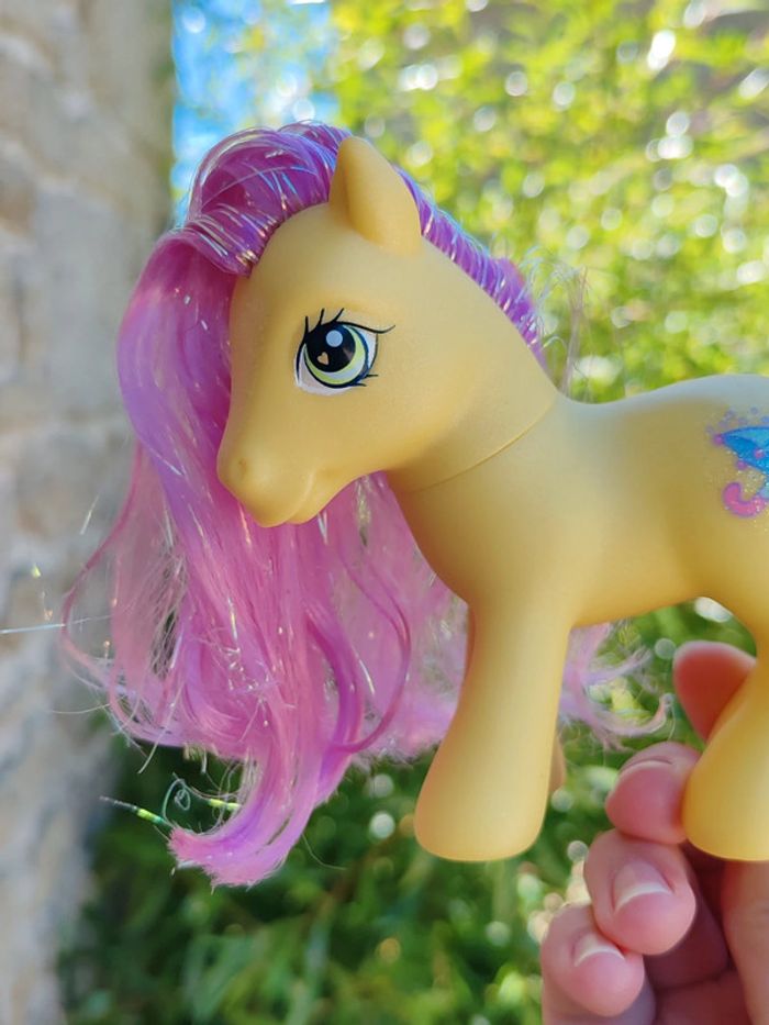 My little pony - poney g3 Hasbro - 2002 - made in china Une patte aimantée Couleurs : jaune et violet à paillettes En très bon état Symbole : parapluie D'autres poneys dans mon dressing ➡️ #ursullabuffaypetitponey