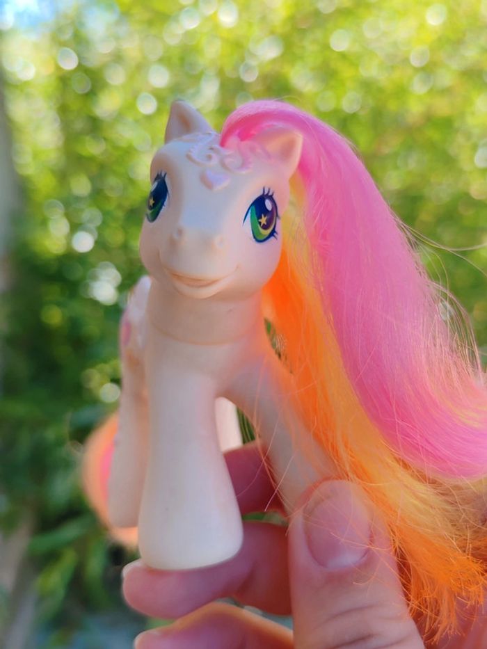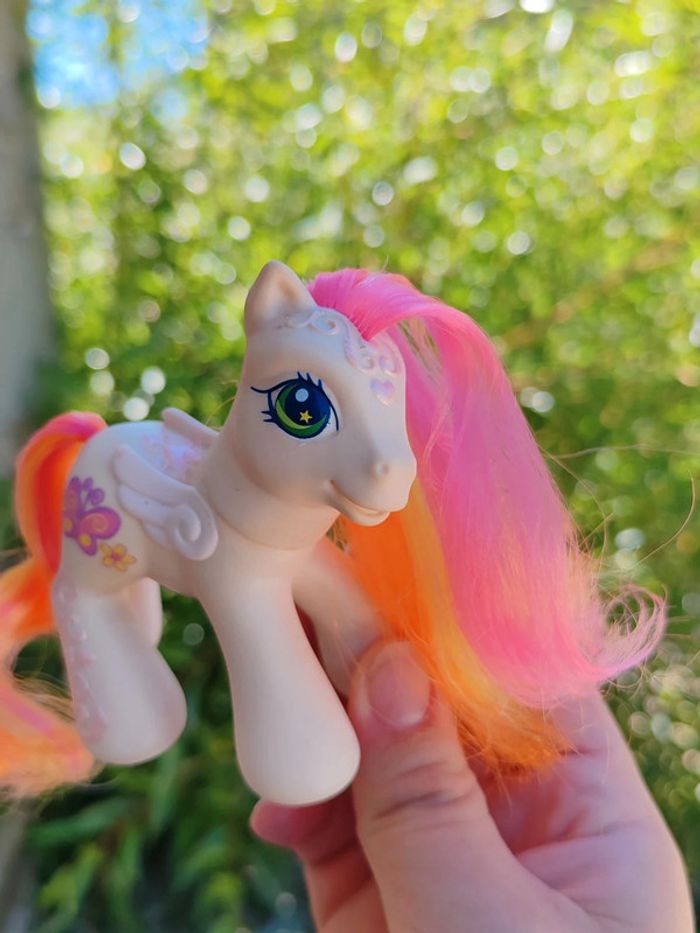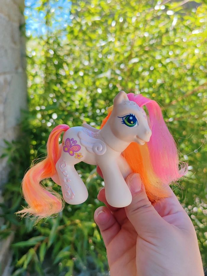 My little pony - poney g3 Hasbro - 2004 - made in china Une patte aimantée Couleurs : blanc orange et rose En très bon état Symbole : papillon D'autres poneys dans mon dressing ➡️ #ursullabuffaypetitponey