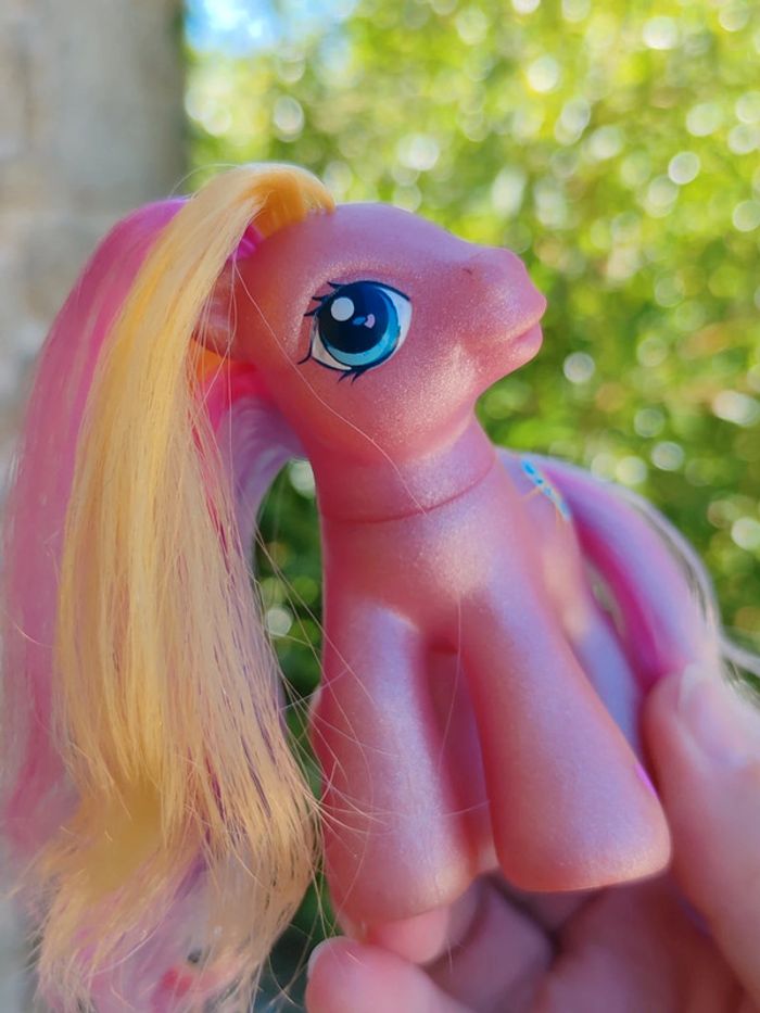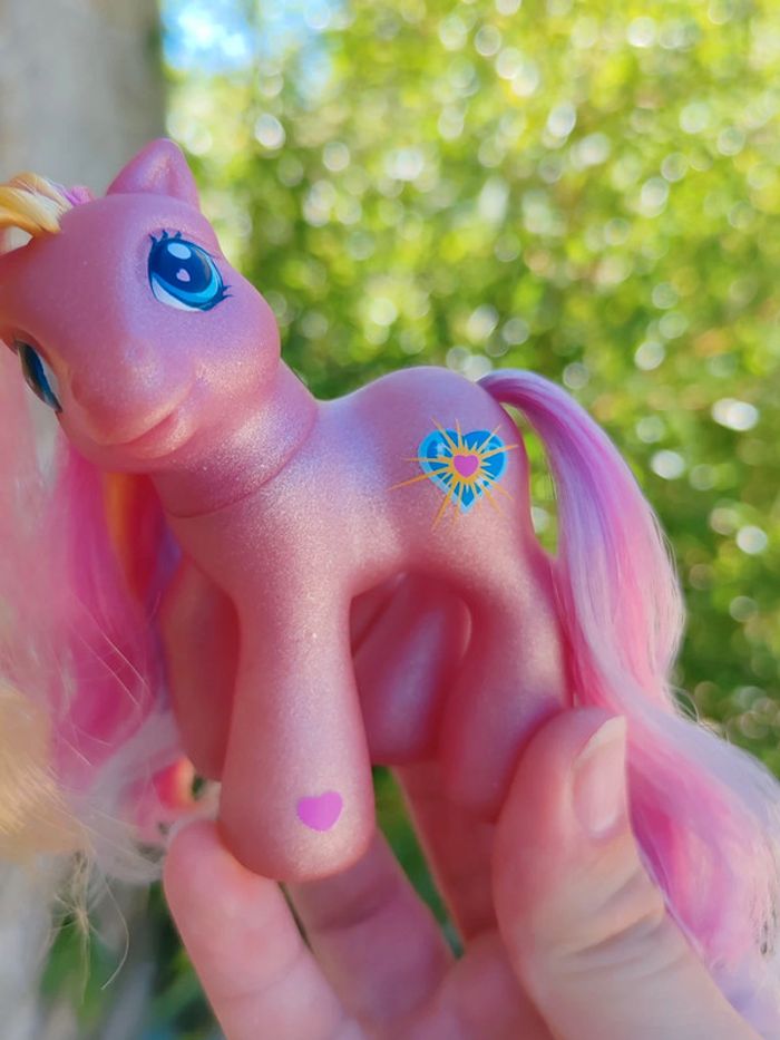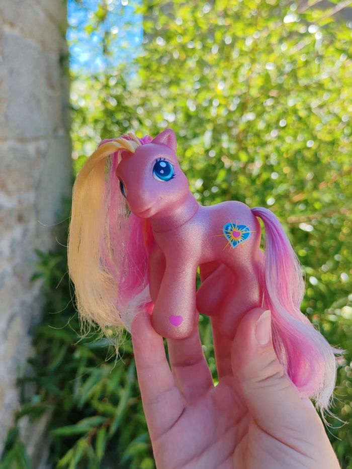 My little pony - poney g3 Hasbro - 2002 - made in china Une patte aimantée Couleurs : rose effet métallisé/paillettes et jaune En très bon état Symbole : coeur et soleil scintillant D'autres poneys dans mon dressing ➡️ #ursullabuffaypetitponey