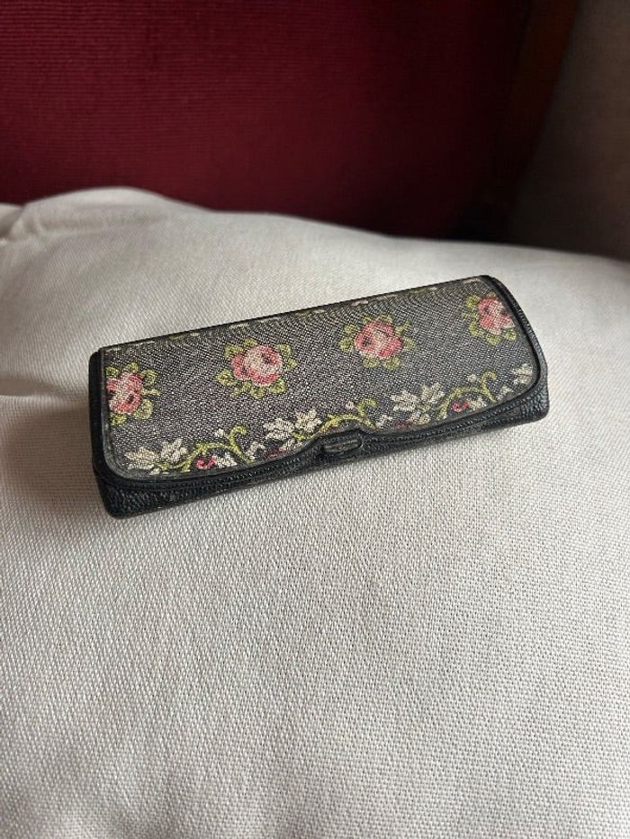 Boîtier ancien à lunettes 👓 ou à binocles, Très petit boîtier charmant à décors de fleurs sur le couvercle En matière plastique ancien