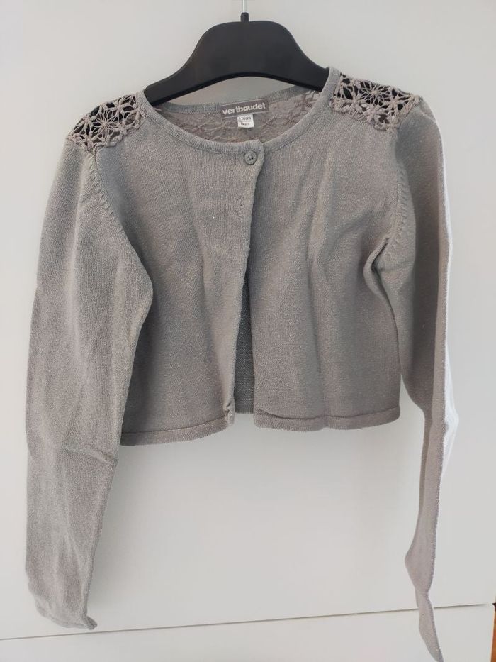 Gilet court qui se ferme avec des boutons. Broderie au dos