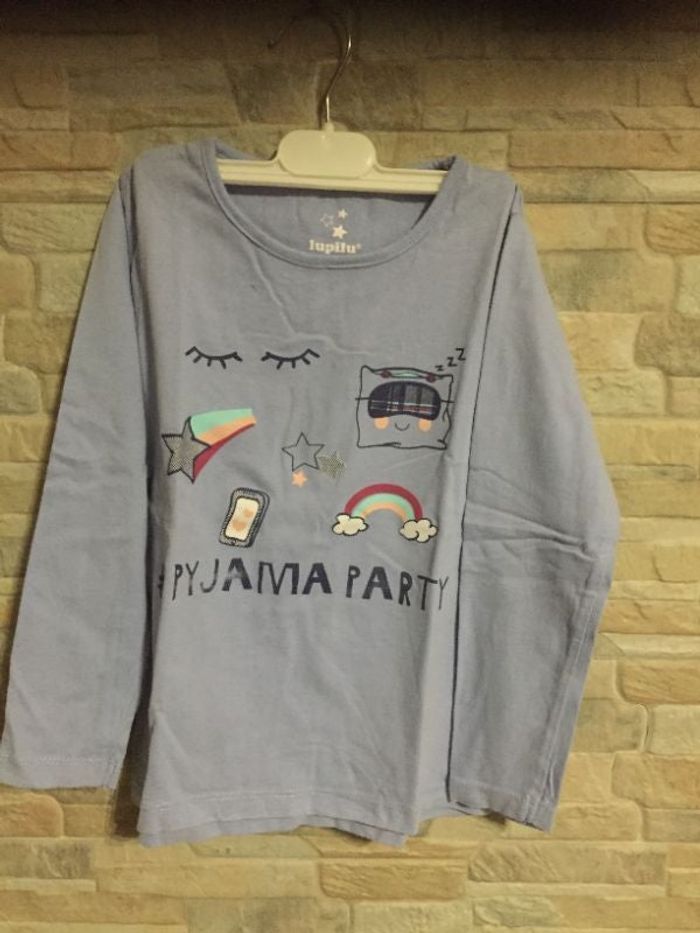 Haut de pyjama Lupilu 4/6A, (110/116) bleu lavande, "pyjama party", 100% coton - (si vous avez le bas parme) - TBE
