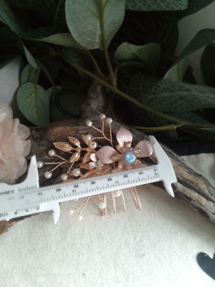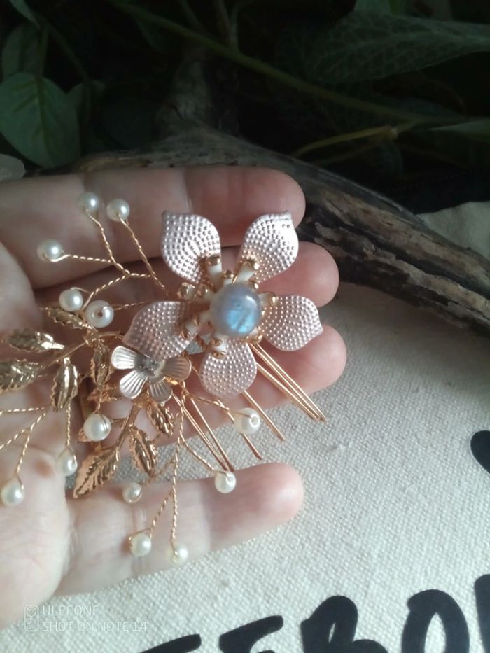 Peigne barrette fleurs bohèmes et pierre de labradorite - photo numéro 3
