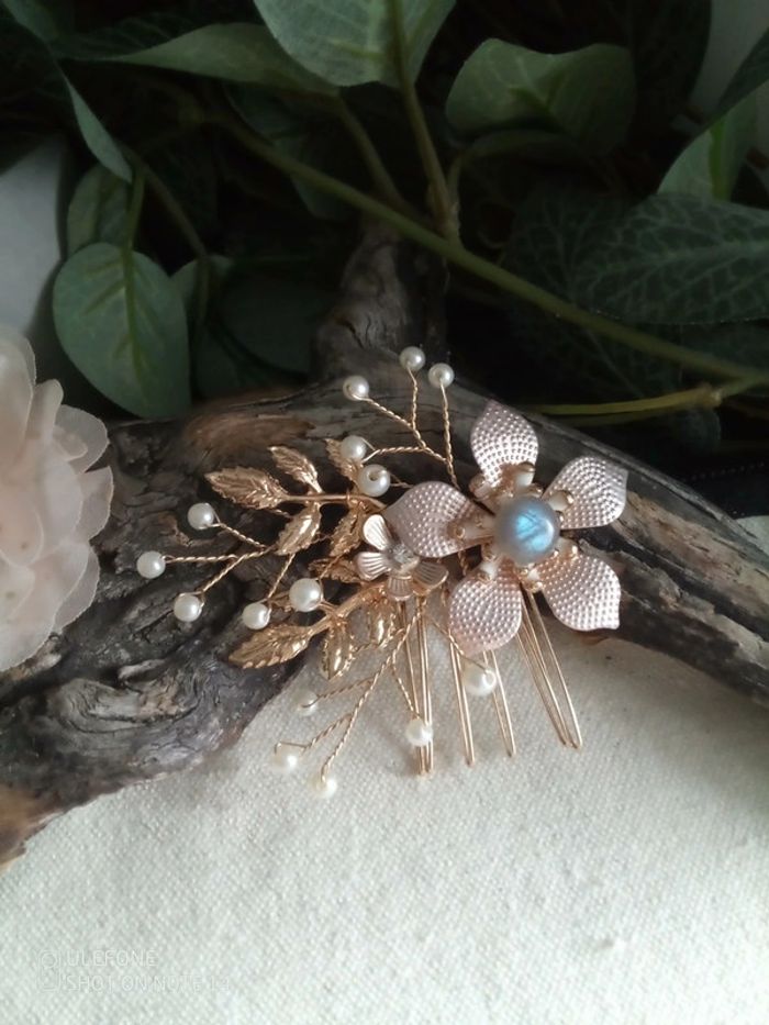 Peigne barrette fleurs bohèmes et pierre de labradorite - photo numéro 1