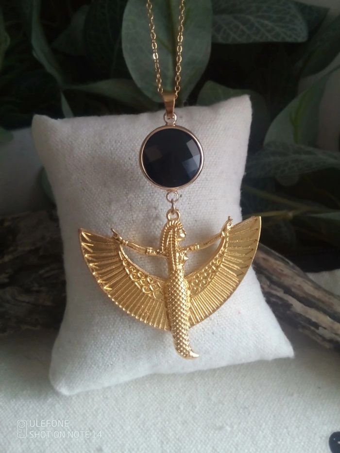 Collier déesse égyptienne pierre onyx noir - photo numéro 1