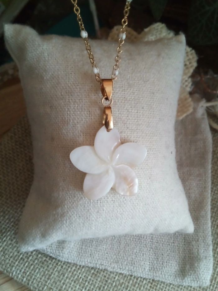 Collier bohème fleur de nacre naturelle - photo numéro 1