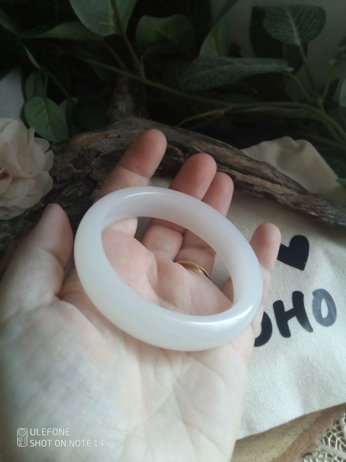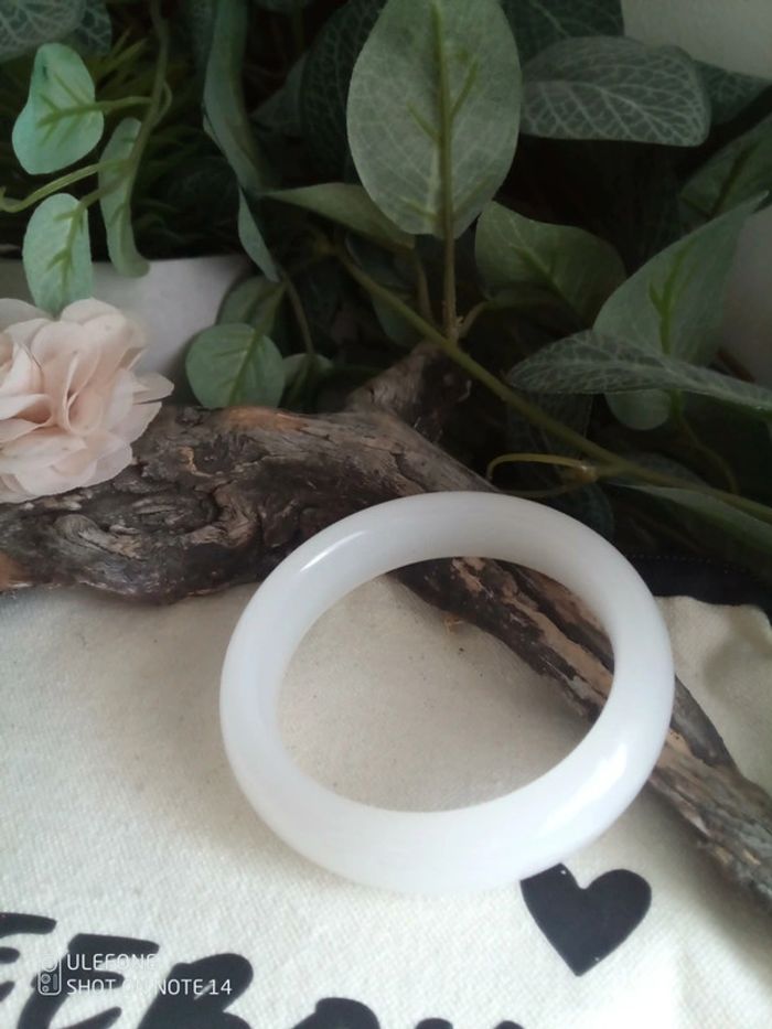 Bracelet jonc de jade blanc pierre naturelle - photo numéro 2