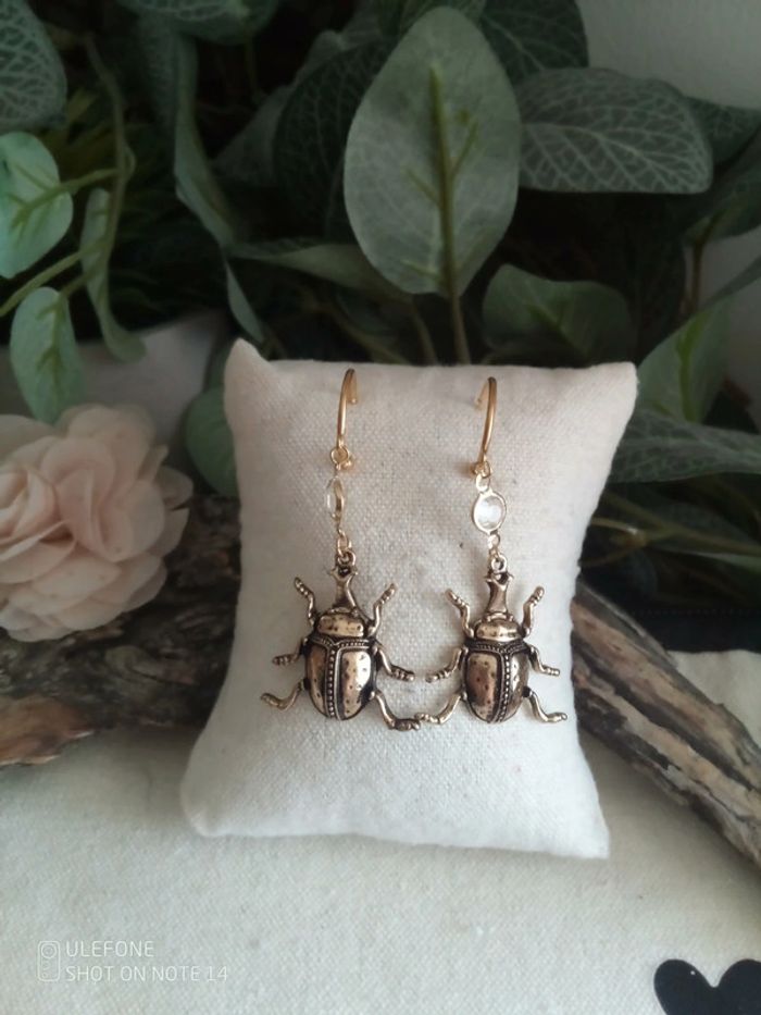 Boucles d'oreilles scarabées dorées - photo numéro 2