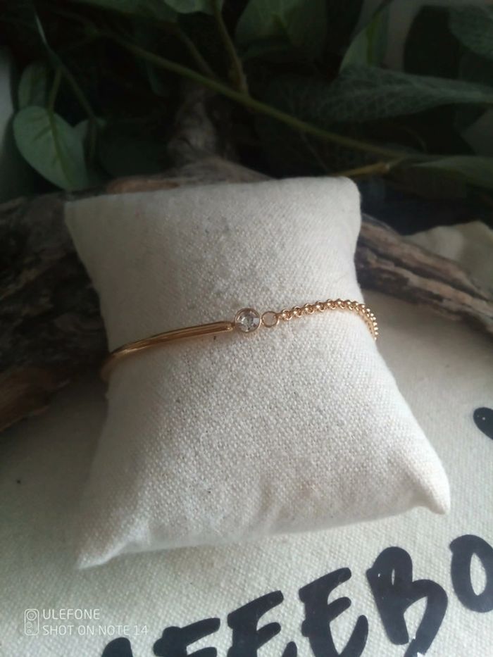 Bracelet en acier inoxydable doré et zircon - photo numéro 1