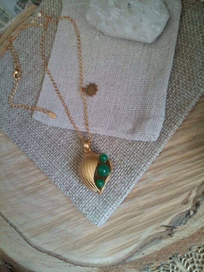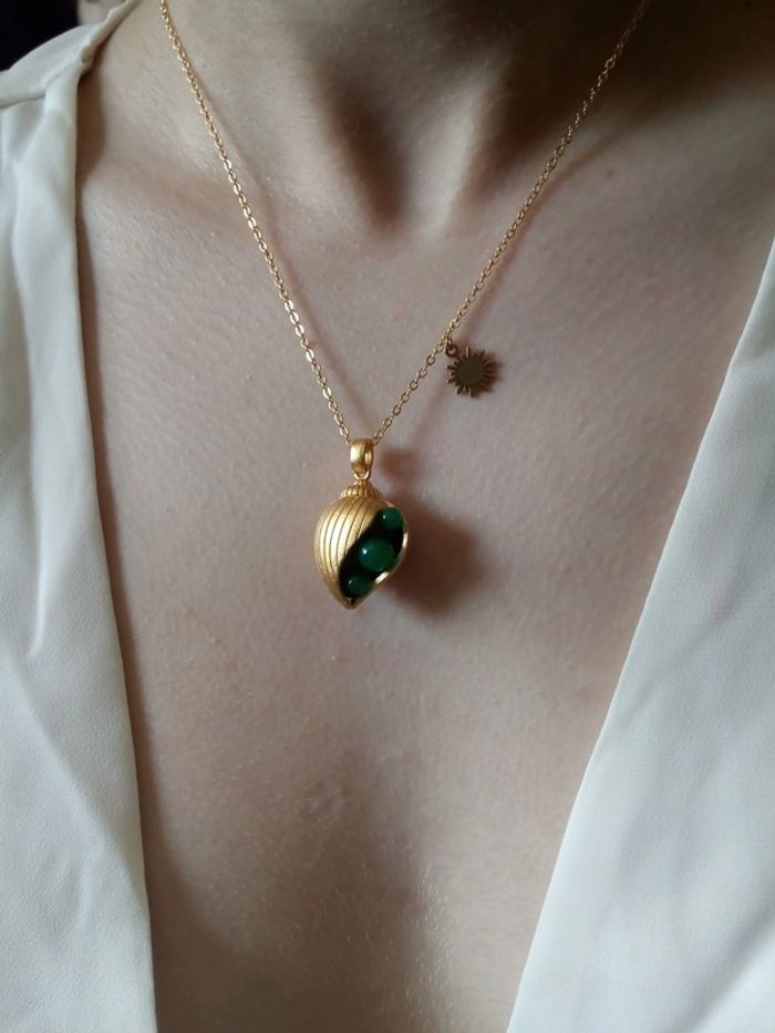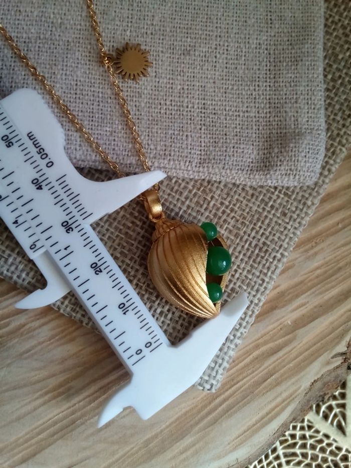 Collier pendentif coquillage perles de jade - photo numéro 2