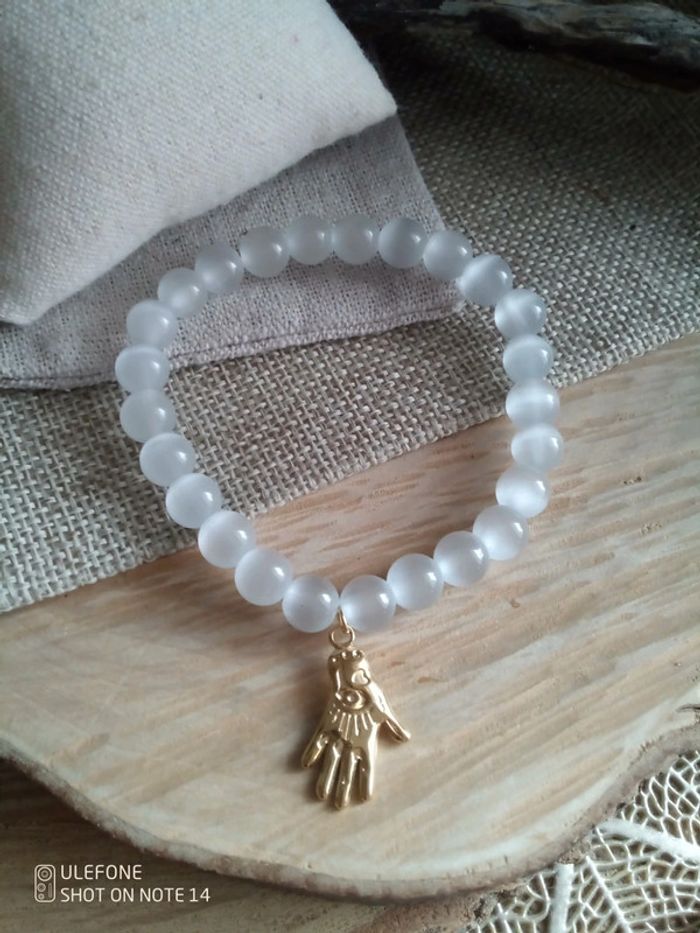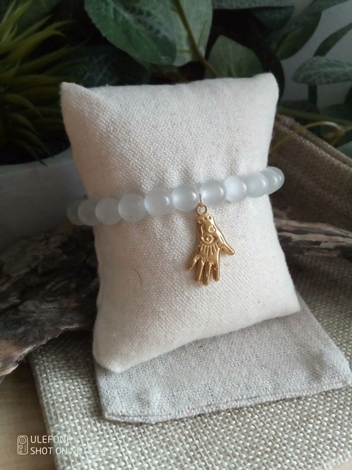 Bracelet sélénite pierres naturelles et main en acier - photo numéro 1