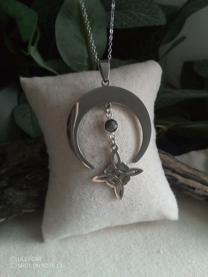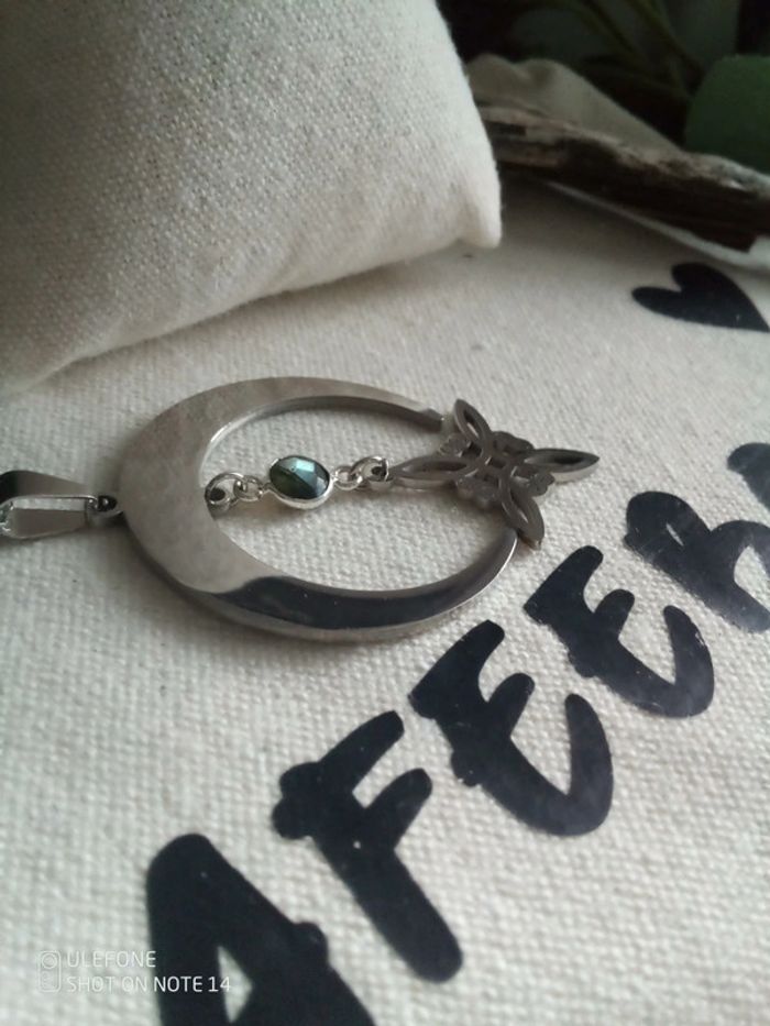 Collier argenté Labradorite et nœud de sorcière - photo numéro 3