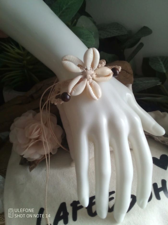 Collier ou bracelet double bohème fleur en coquillages - photo numéro 3