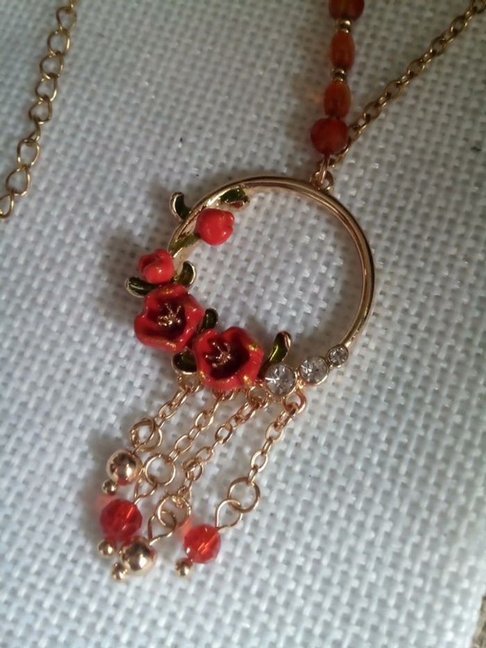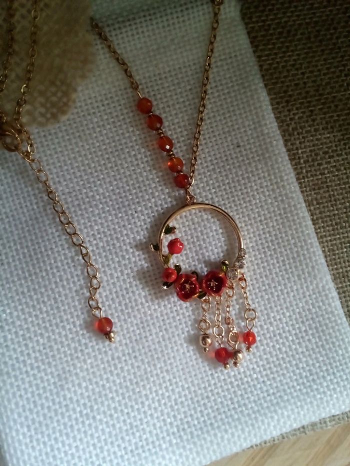 Collier fleurs rouges et pierres en agate rouge - photo numéro 1