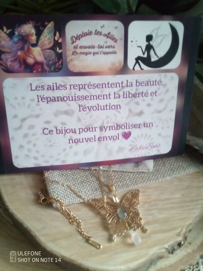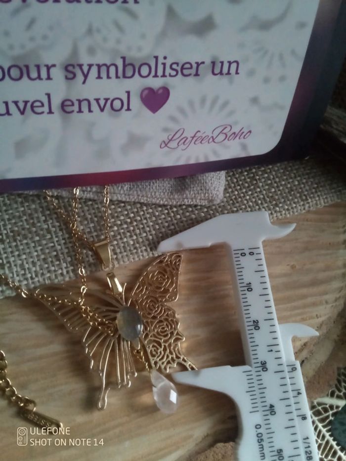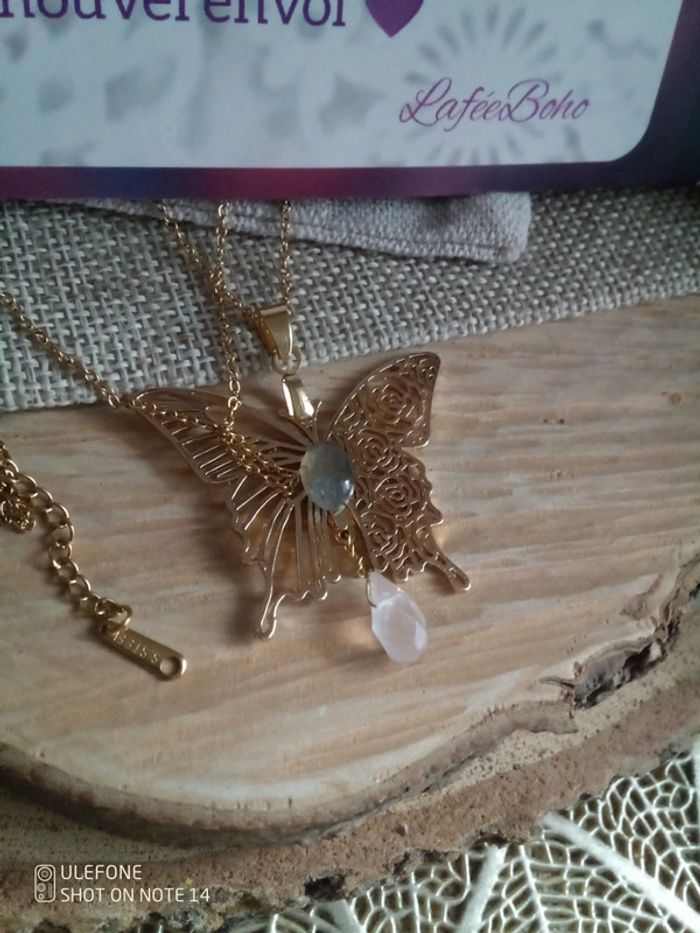 Collier papillon asymétriques avec pierres naturelles + carte - photo numéro 2
