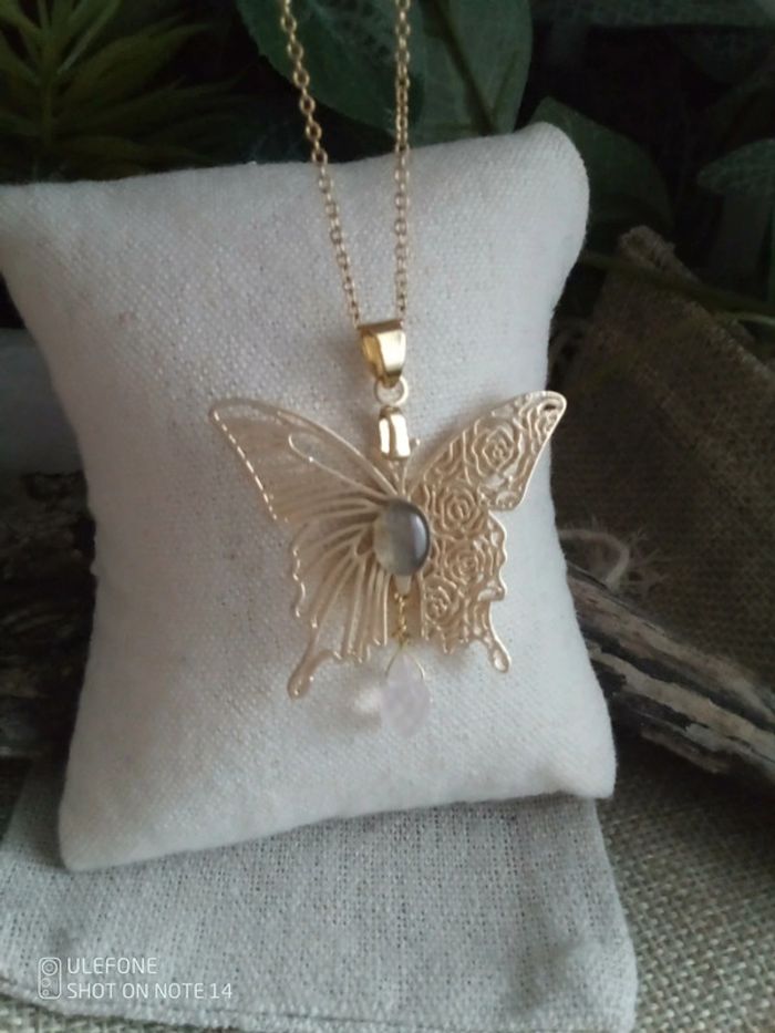 Collier papillon asymétriques avec pierres naturelles + carte - photo numéro 1