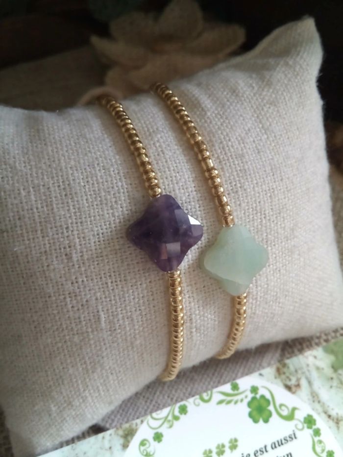 Lot de 2 bracelets en pierres forme trèfles + carte - photo numéro 1