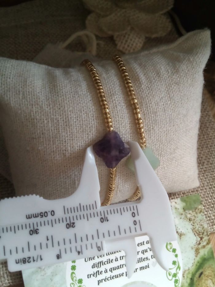 Lot de 2 bracelets en pierres forme trèfles + carte - photo numéro 4