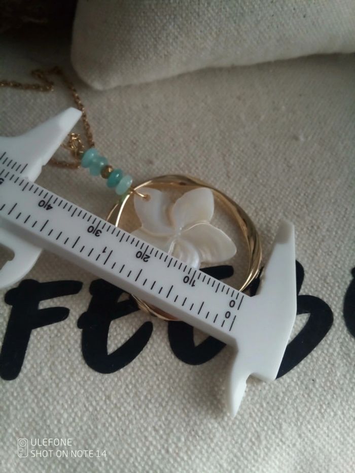Collier fleur de nacre et pierres amazonite - photo numéro 2
